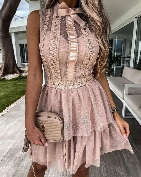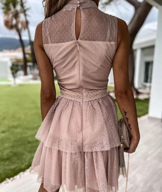 Sukienka damska mini | wieczorowa bez rękawów z falbaną i zapięciem na plecach