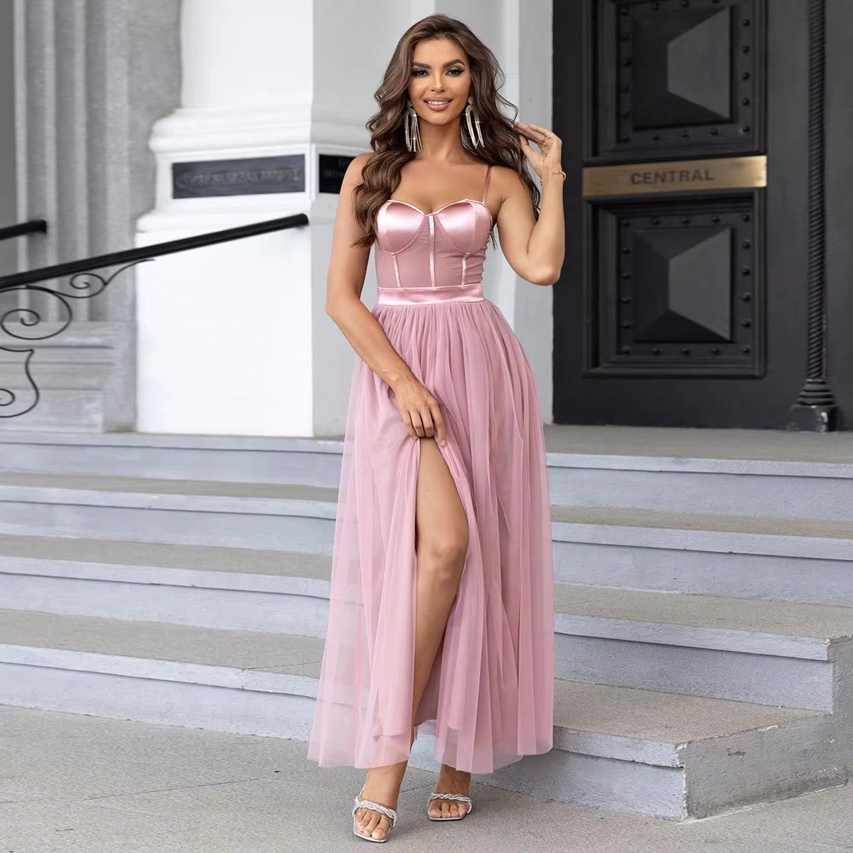 Sukienka maxi damska z rozcięciem | dopasowana kreacja z dekoltem V na wiele okazji