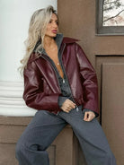 Kurtka damska wykonana ze skóry ekologicznej. Klasyczny krój z kołnierzem i zapięciem na suwak z przodu. Posiada kieszenie boczne oraz wykończone mankiety i dół. Kurtka posiada szwy boczne i na ramionach.