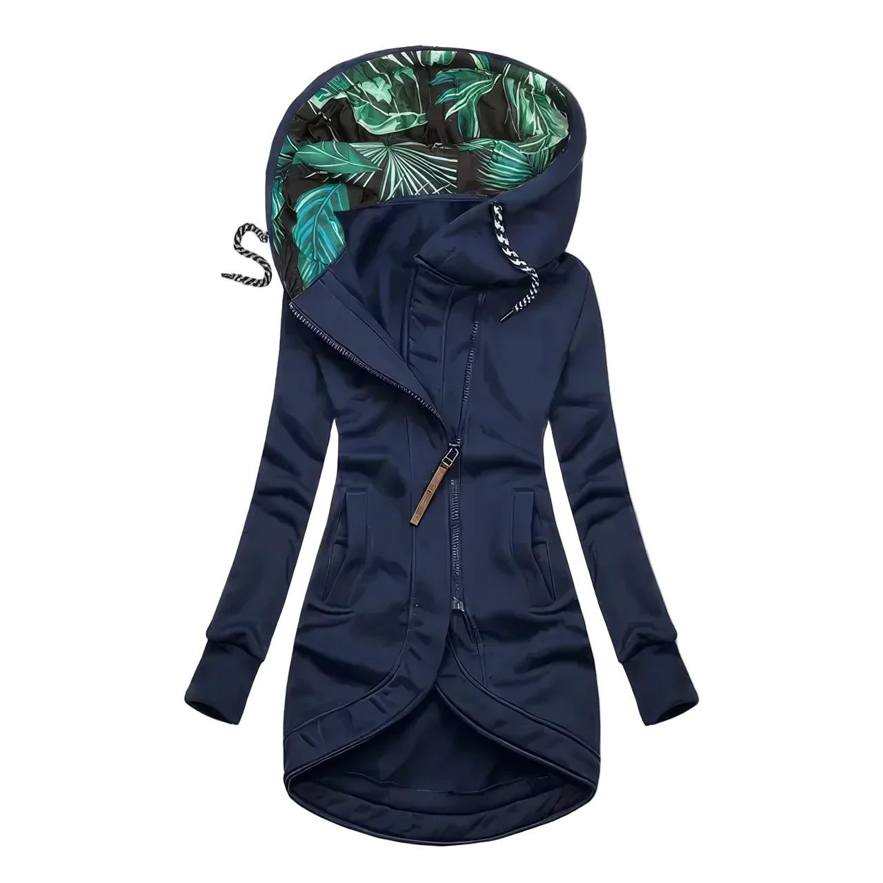 Ten długi zimowy płaszcz damski ma prosty krój i długi fason. Przód zapinany jest na zamek, a model posiada kieszenie. Odpowiedni na sezon jesień/zima.
