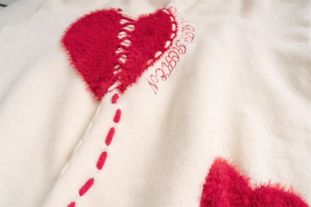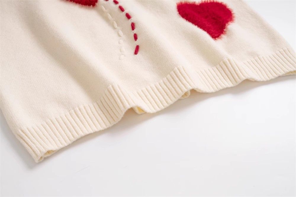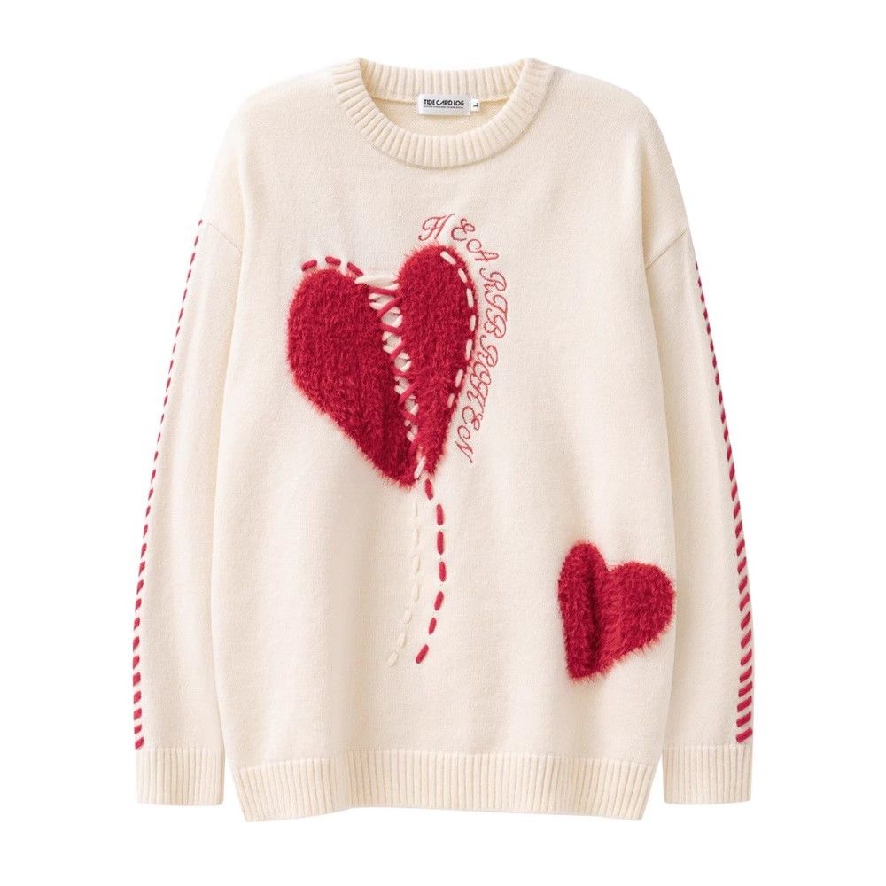 Sweter z motywem serca wykonany z naturalnego materiału. Luźny krój, prosty design z sercem na przodzie, odpowiedni do codziennych stylizacji i spokojniejszych okazji.