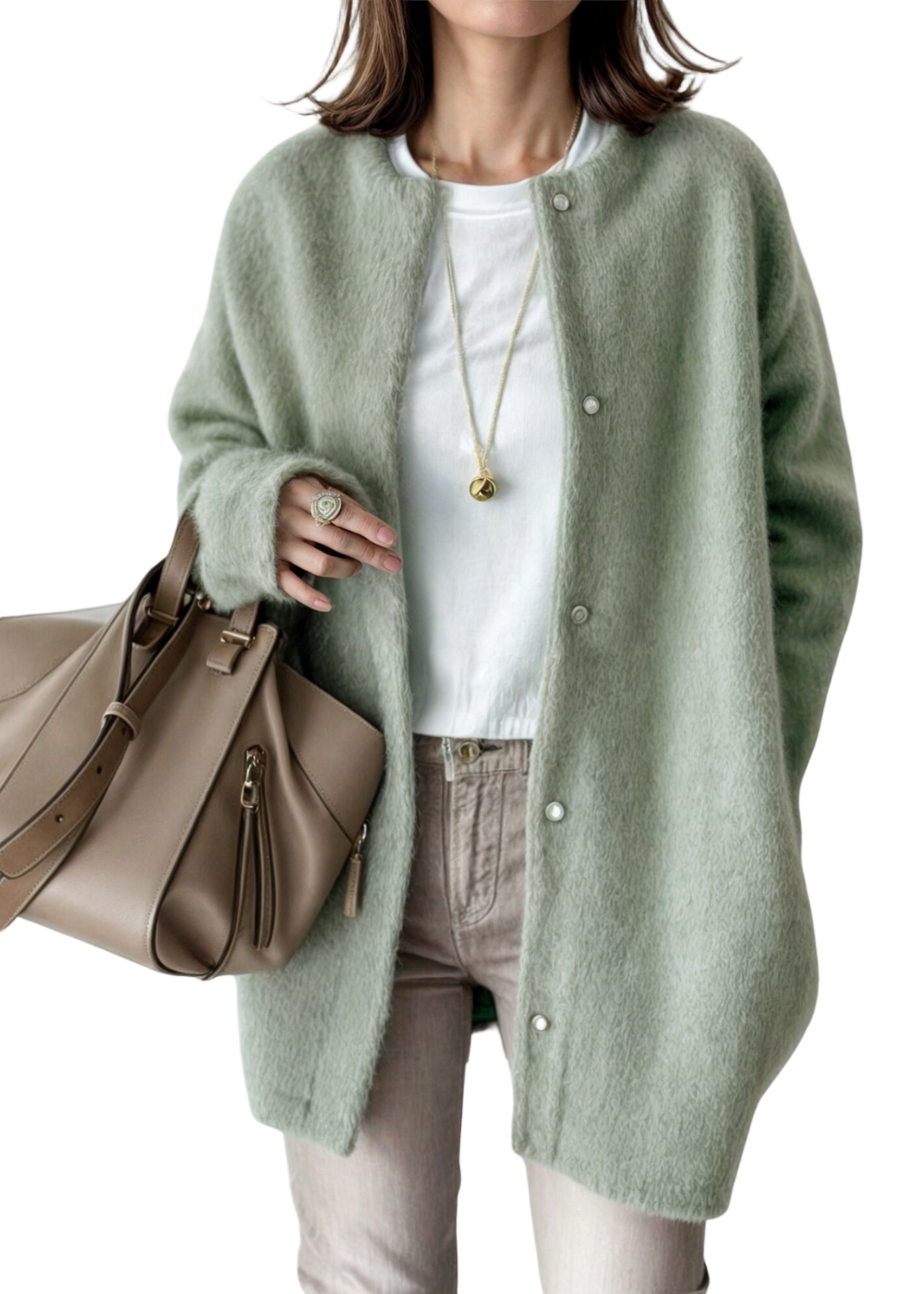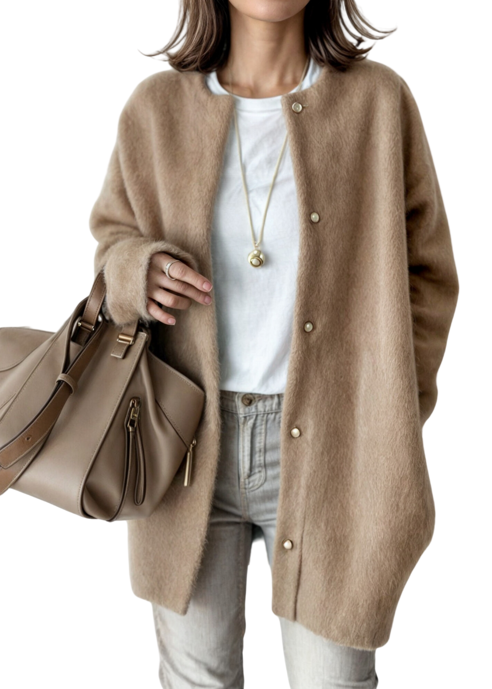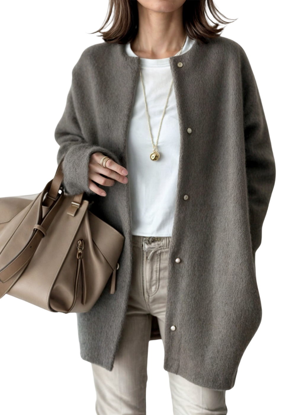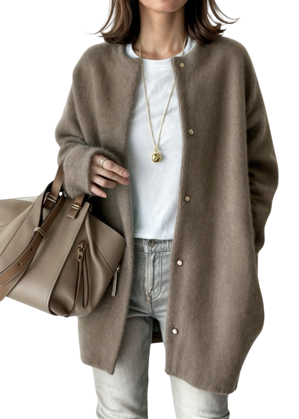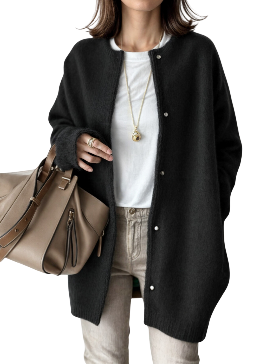 Ten damski kardigan wykonany jest z materiału o gładkiej strukturze. Posiada otwarty przód i luźny krój, który nadaje mu swobodny charakter oraz sprawia, że doskonale prezentuje się w różnych stylizacjach.