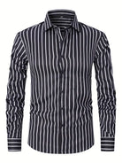 Ta męska koszula w paski z bawełny posiada klasyczny kołnierzyk oraz prosty krój, który sprawdzi się w codziennych i formalnych stylizacjach. Subtelny wzór w paski nadaje całości wyrazistego charakteru.