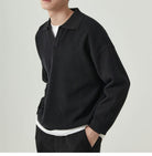 Ta męska koszula z długim rękawem ma luźny fason, klasyczny kołnierzyk i proste rękawy.