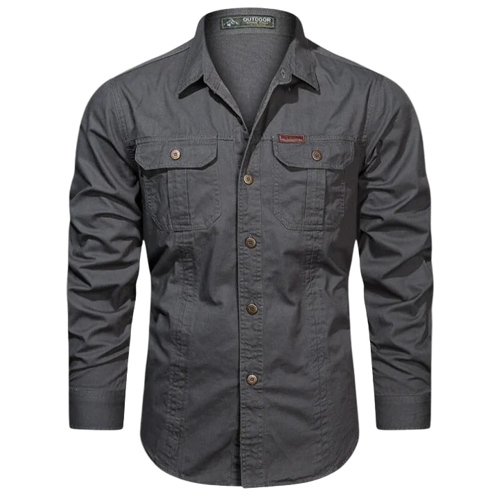 Ta męska koszula cargo została wykonana z materiału, który nadaje się do codziennego noszenia. Wyposażona jest w praktyczne kieszenie, które zapewniają dodatkowe miejsce do przechowywania. Klasyczny krój sprawia, że koszula może być noszona w różnych sytuacjach.