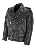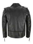 Ta męska kurtka biker została wykonana z materiału skórzanego. Posiada klasyczny krój z kieszeniami i prosty fason. Zamek błyskawiczny z przodu jest elementem konstrukcyjnym kurtki.