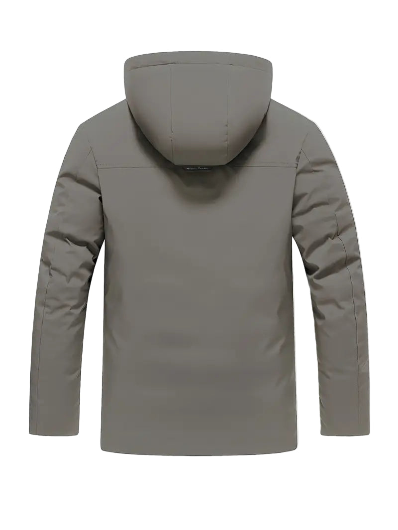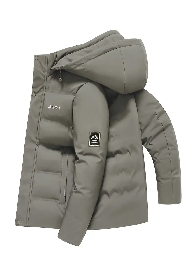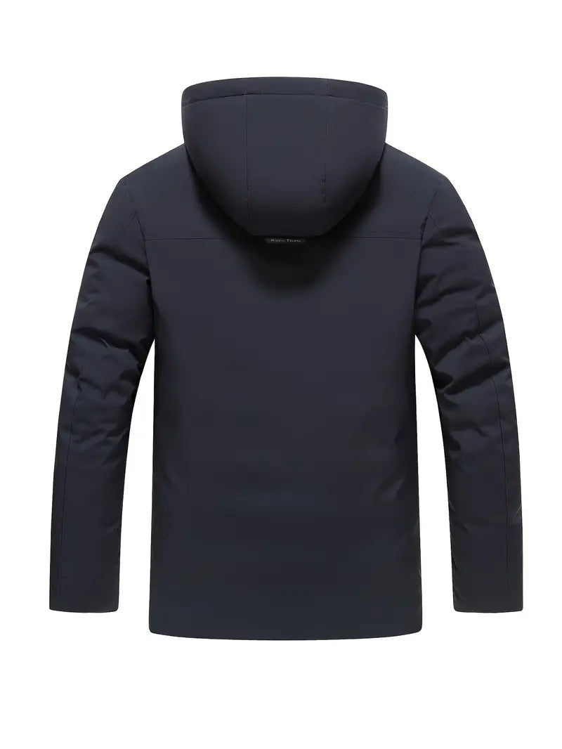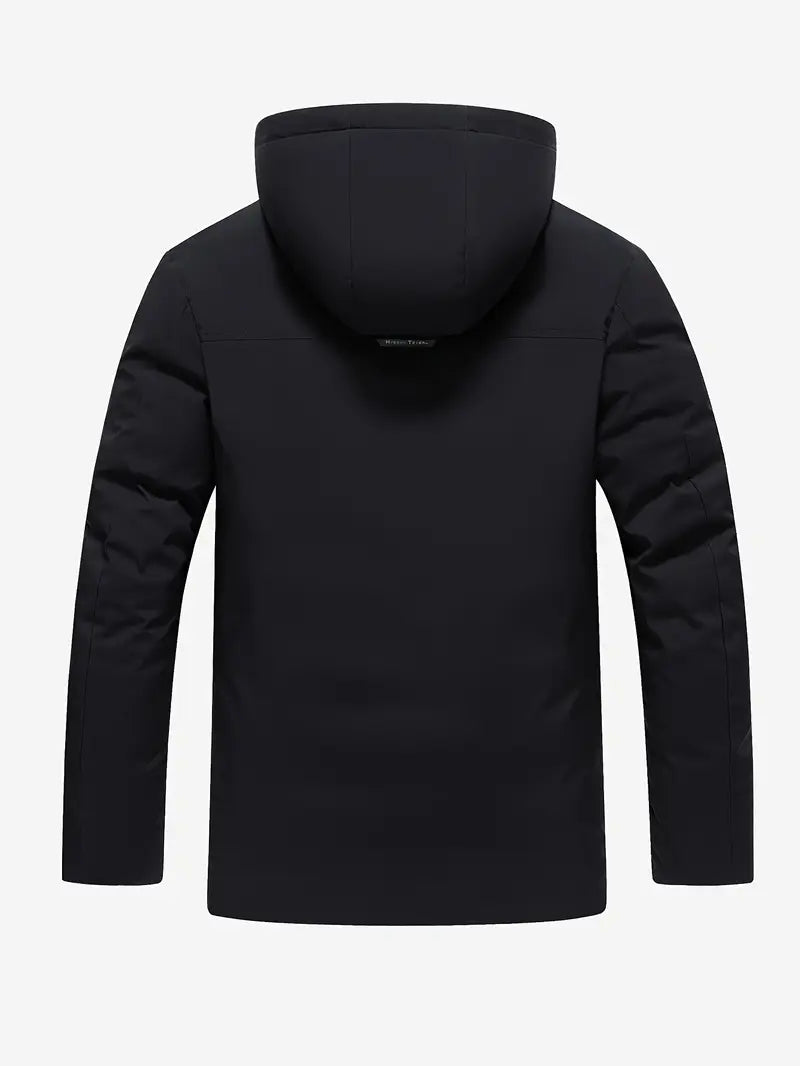 Męska kurtka zimowa z klasycznym krojem i stójką. Kurtka posiada zamek błyskawiczny, długie rękawy oraz kieszenie zapinane na zamek. Luźny fason zapewnia swobodę ruchów, a odpinany kaptur umożliwia różne warianty noszenia.