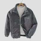 Ta męska kurtka sztruksowa wykonana jest z charakterystycznego prążkowanego materiału. Jej fason wzbogacono elementami typowymi dla odzieży wierzchniej przeznaczonej na chłodniejsze dni.