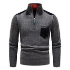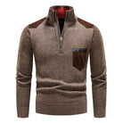 Męski sweter zimowy wykonany jest z mieszanki wełny i poliestru, co sprawdza się w sezonie chłodniejszym. Posiada wysoką stójkę z krótkim zamkiem błyskawicznym. Klasyczny fason pozwala łączyć go z różnymi elementami garderoby w codziennych stylizacjach.