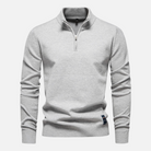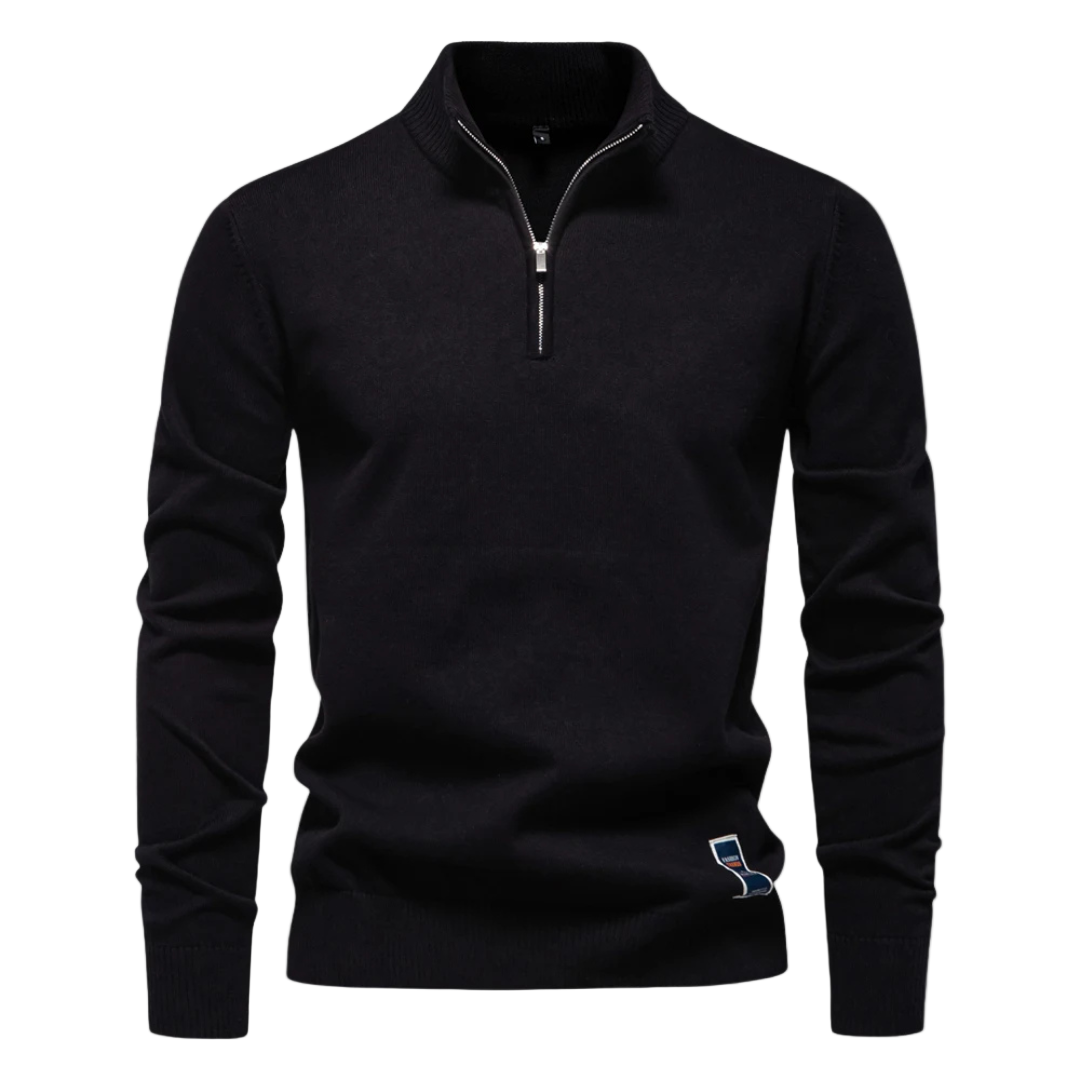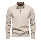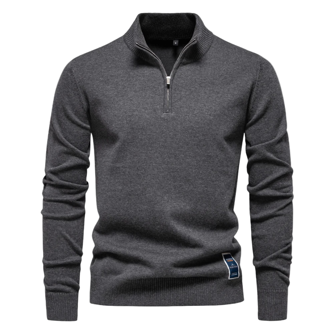 Męski zimowy sweter dzianinowy wykonany jest z oddychającej mieszanki włókien naturalnych, odpowiedniej na chłodniejsze miesiące. Regularny krój sprawia, że sweter dobrze układa się zarówno noszony samodzielnie, jak i pod okryciem wierzchnim. Zapięcie pod szyją na krótki zamek pełni funkcję praktycznego elementu konstrukcyjnego, nadając całości klasyczny wygląd.