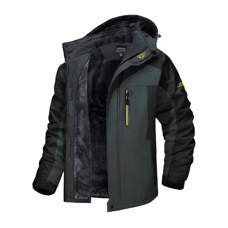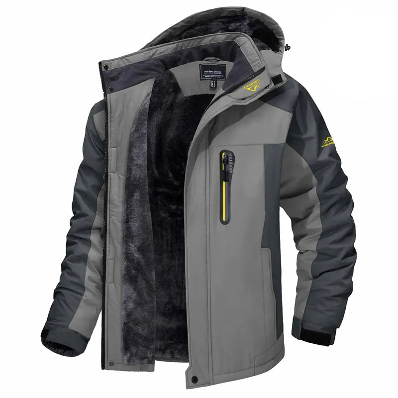 Ta męska kurtka zimowa z kapturem wykonana jest z poliestru, która sprawdza się podczas niesprzyjających warunków pogodowych. Wewnątrz znajduje się podszewka z polaru, a wypełnienie z materiału syntetycznego zapewnia dodatkową izolację. Model posiada pełny zamek błyskawiczny z listwą przeciwwiatrową oraz regulowany kaptur i mankiety.